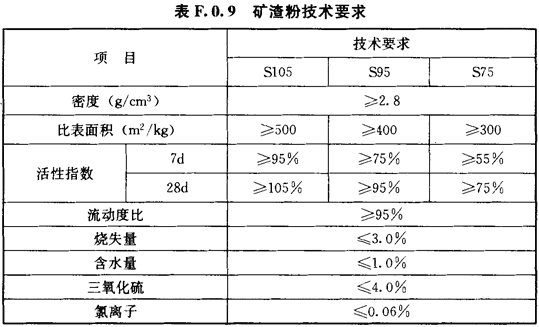 F.0.9 礦渣粉應符合表F.0.9的規(guī)定。