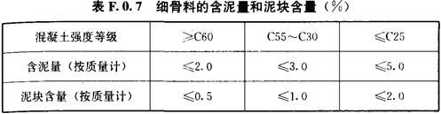 F.0.7 細骨料的含泥量和泥塊含量應符合表F.0.7的規(guī)定。