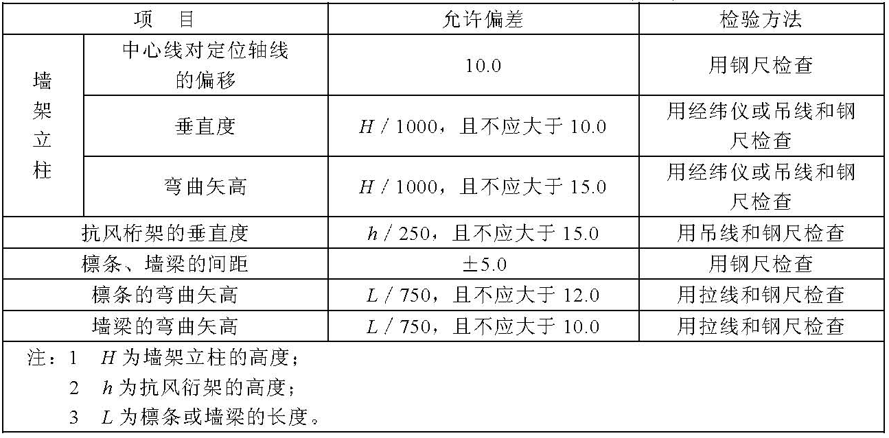 表E.0.3 墻架、檁條等次要構(gòu)件安裝的允許偏差(mm)