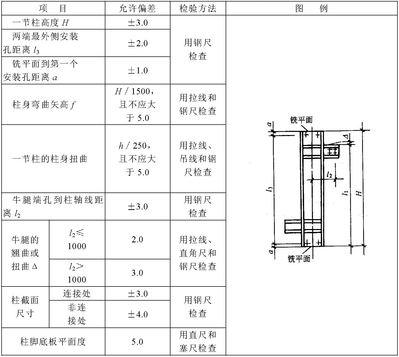 E.0.1 單層鋼結(jié)構(gòu)中柱子安裝的允許偏差應(yīng)符合表E.0.1的規(guī)定。