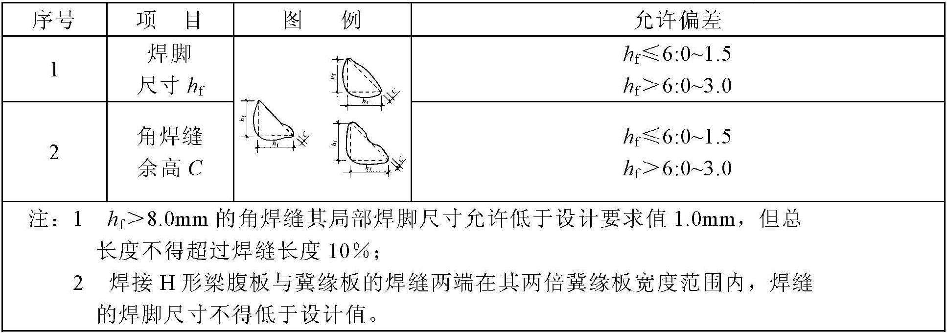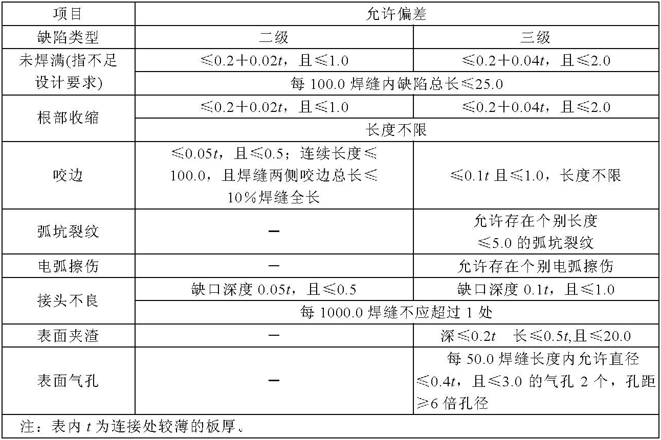 A.0.1 二級(jí)、三級(jí)焊縫外觀質(zhì)量標(biāo)準(zhǔn)應(yīng)符合表A.0.1的規(guī)定。