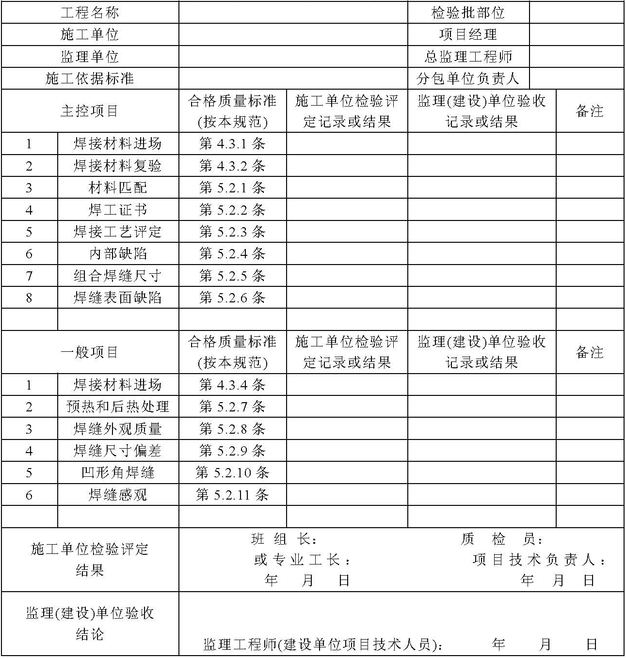 J.0.1 鋼結(jié)構(gòu)(鋼構(gòu)件焊接)分項(xiàng)工程檢驗(yàn)批質(zhì)量驗(yàn)收應(yīng)按表J.0.1進(jìn)行記錄。