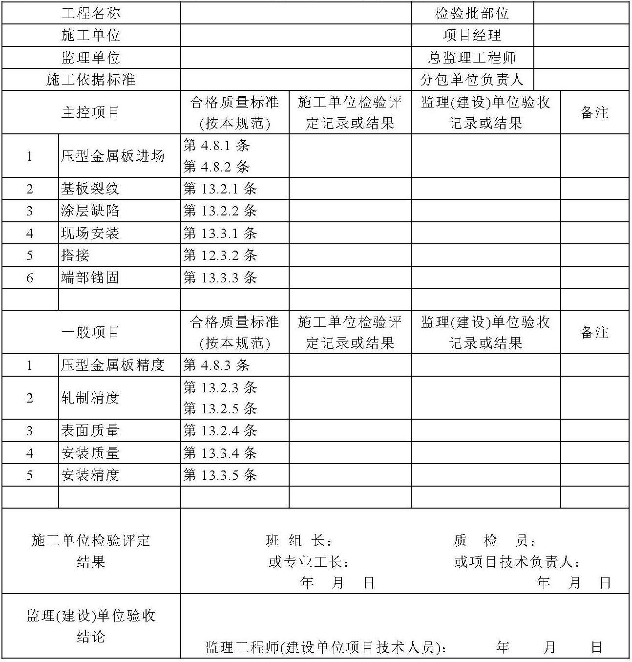 J.0.11 鋼結(jié)構(gòu)(壓型金屬板)分項(xiàng)工程檢驗(yàn)批質(zhì)量驗(yàn)收應(yīng)按表J.0.11進(jìn)行記錄。