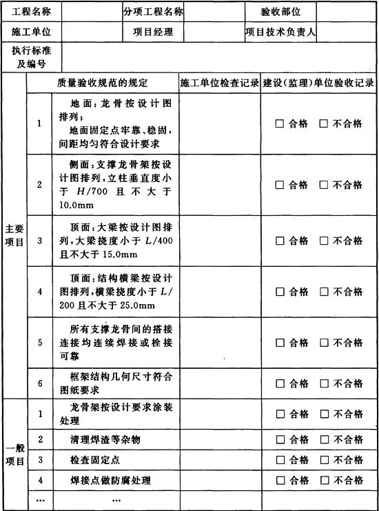 C.0.2 電磁屏蔽體支撐框架質量驗收記錄表應由施工單位質量檢查員填寫,并應按表C.0.2記錄。