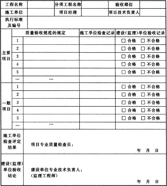 C.0.1 通用質量驗收記錄應由施工單位質量檢查員填寫,并應按表C.0.1記錄。
