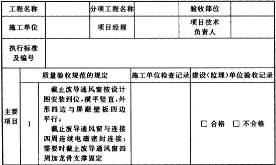 表C.0.4 電磁屏蔽門和電磁屏蔽窗質量驗收記錄表