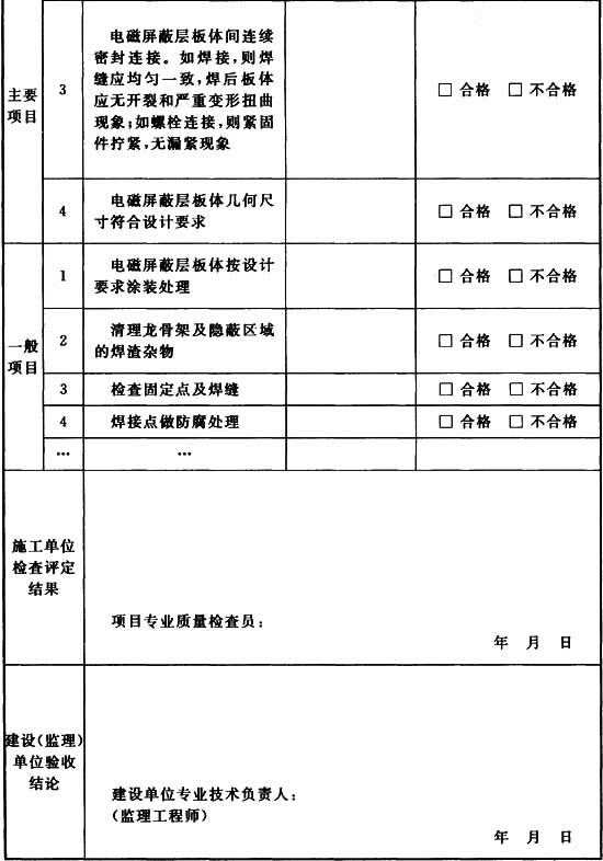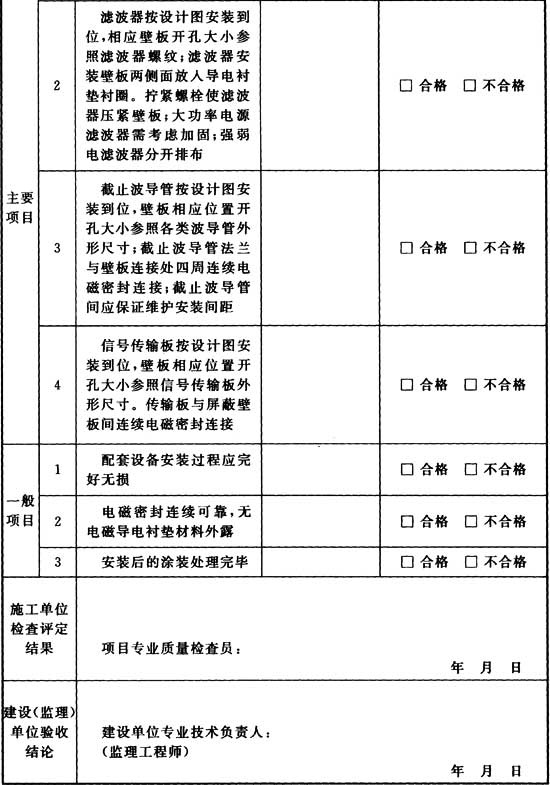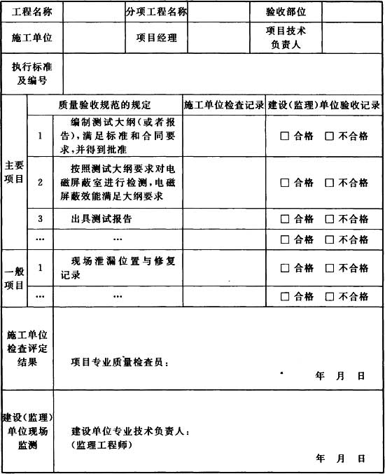 表D.0.1 電磁屏蔽室工程竣工驗收記錄表