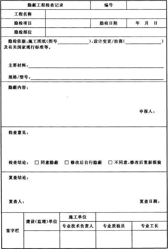 C.0.10 隱蔽工程檢查記錄表應由施工單位質量檢查員填寫,并應按表C.0.10記錄。