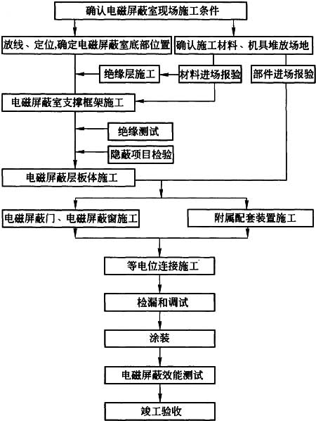 2 電磁屏蔽室工程施工工序宜符合本規(guī)范附錄A的要求,應按施工技術標準進行質量控制;每道工序完成后,應進行檢查,并分別按本規(guī)范附錄C、附錄D的內容形成記錄。