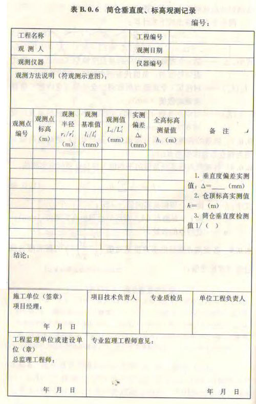 B.0.1 筒倉垂直度(全高)檢測應(yīng)在倉壁結(jié)構(gòu)施工完成后進(jìn)行。垂直度觀測除滿足附錄要求外,尚應(yīng)符合現(xiàn)行行業(yè)標(biāo)準(zhǔn)《建筑變形測量規(guī)范》JGJ 8的有關(guān)規(guī)定。