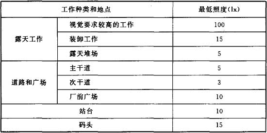 表G.0.2 廠區(qū)露天場所和道路等一般照明照度標準