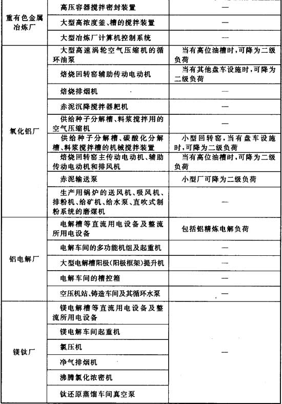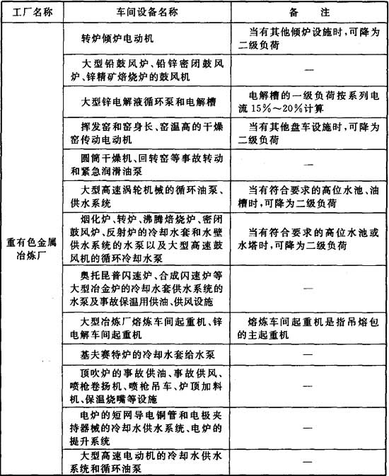 附錄A 有色金屬冶煉廠一級負荷用電設(shè)備表