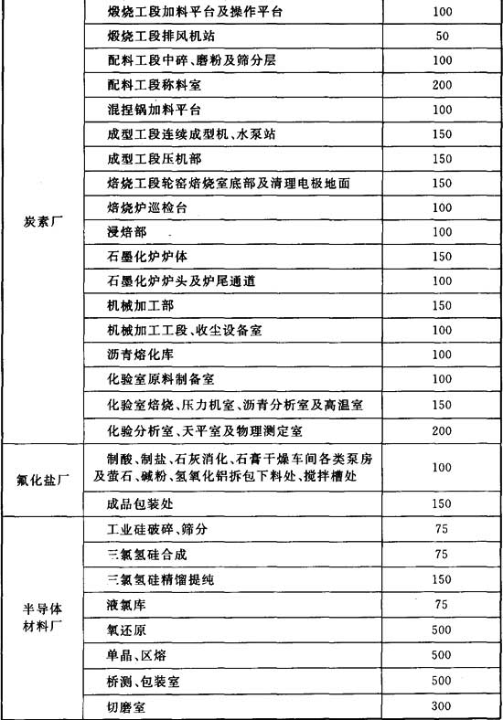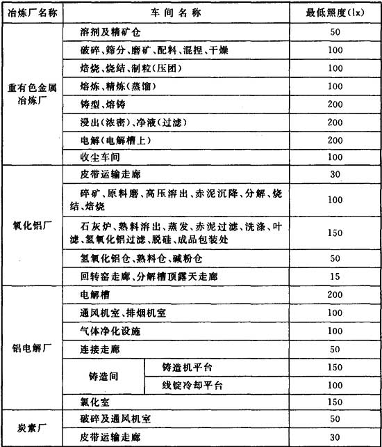 附錄G 有色金屬冶煉廠一般照明照度標準