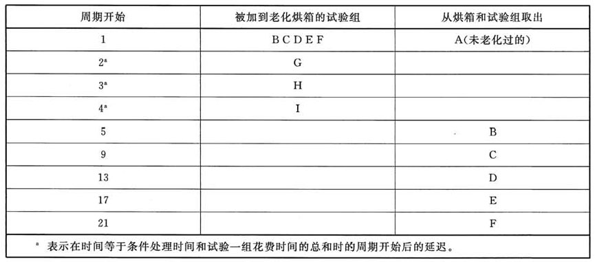 在順序開始之時,把五個試驗組放入烘箱。經(jīng)順序延遲后(見表B.1,下面的腳注a),再添加另外的三個組。