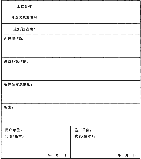 C.0.1 設(shè)備開箱檢查記錄的內(nèi)容應(yīng)包括表C.0.1規(guī)定的內(nèi)容。