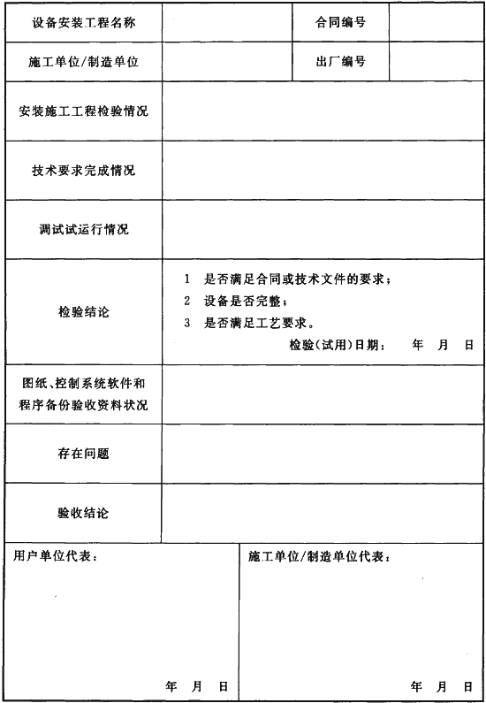 表C.0.3 設(shè)備安裝工程驗(yàn)收?qǐng)?bào)告