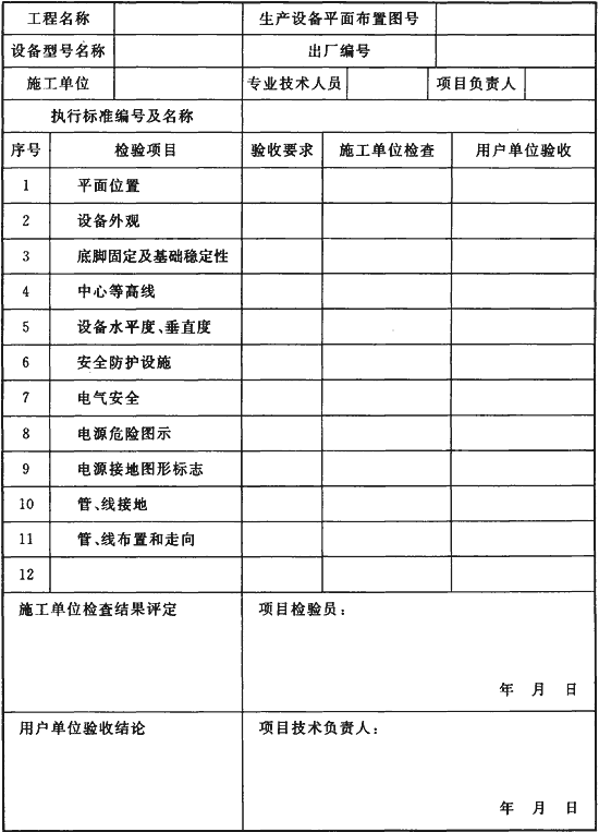C.0.2 設(shè)備安裝工程質(zhì)量驗(yàn)收記錄內(nèi)容應(yīng)包括表C.0.2規(guī)定的內(nèi)容。