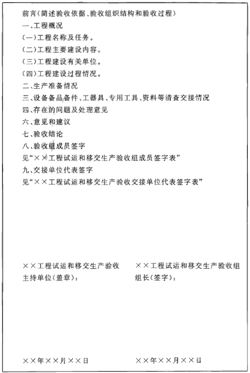 附錄E 工程試運(yùn)和移交生產(chǎn)驗(yàn)收鑒定書(shū)
