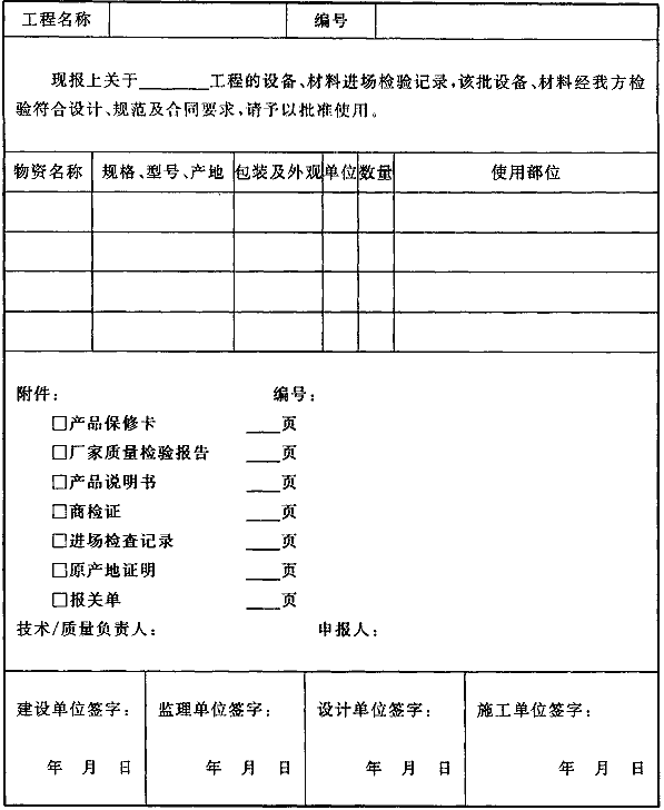 注:1 檢查結(jié)果的安裝質(zhì)量欄,按檢查內(nèi)容序號,合格的打“√”,不合格的打“×”,并注明部位或圖號。
