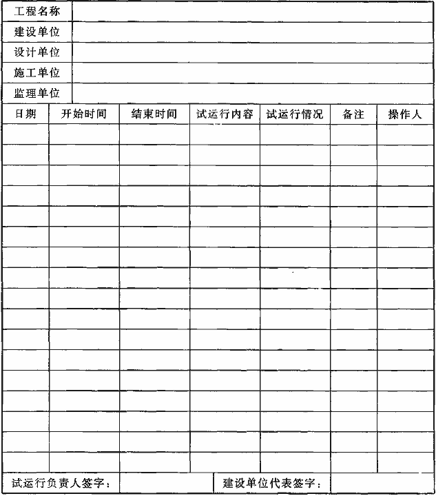 注:系統(tǒng)試運行情況欄中,正常的打“√”,不正常的打“×”,并在備注欄內(nèi)扼要說明故障情況。