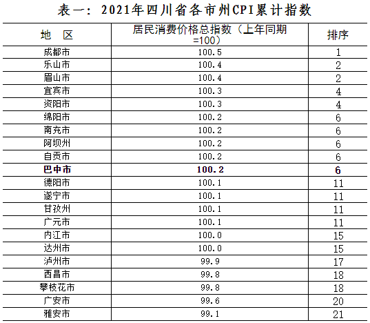 (四川省)巴中市2021年居民消費價格走勢分析報告
