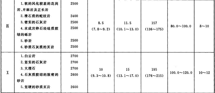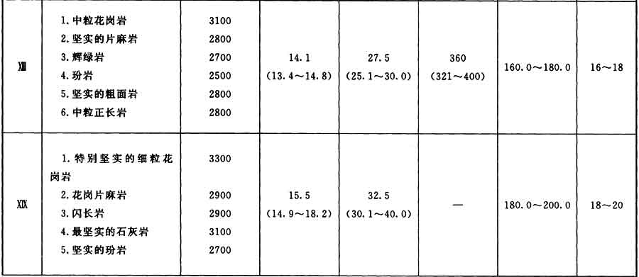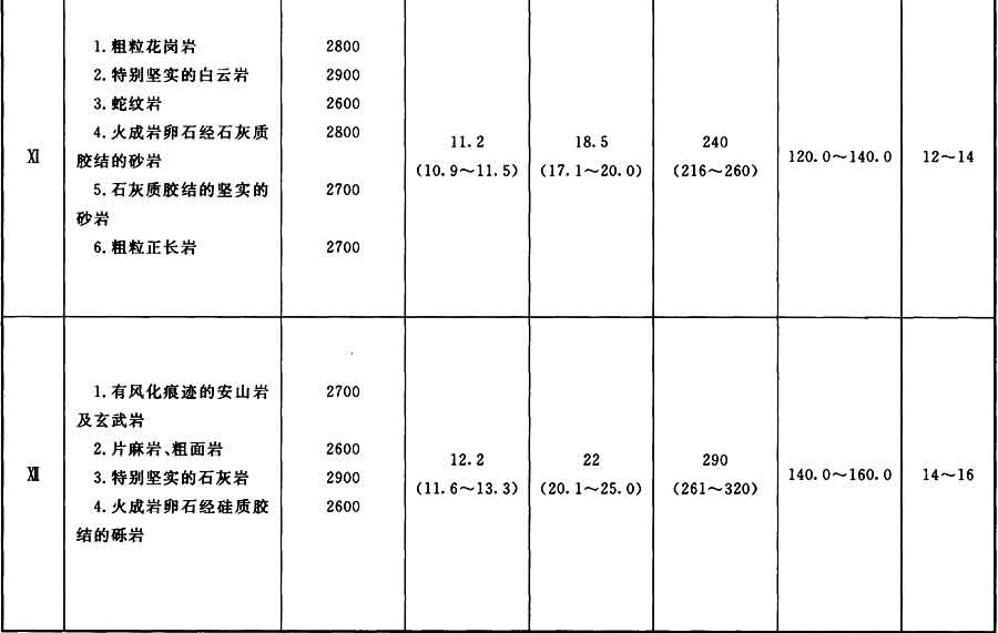 | 巖石類別 | 周邊孔間距(m) | 周邊孔抵抗線(m) | 線裝藥密度(g/m) |