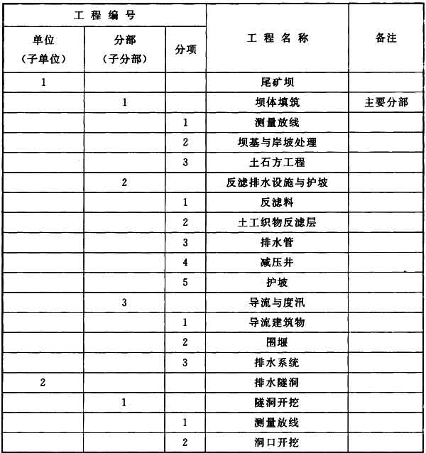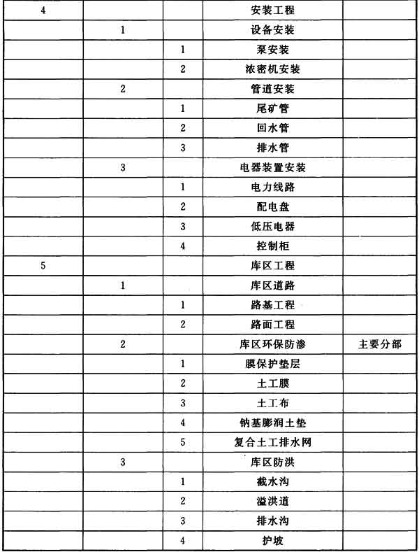表12.0.1 尾礦設(shè)施單位(子單位)工程、分部(子分部)工程、分項(xiàng)工程劃分