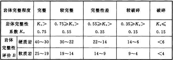 2 巖體完整程度評(píng)分應(yīng)符合表B.0.3-2的規(guī)定。