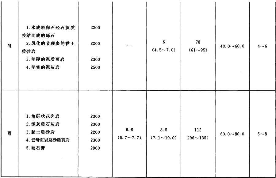 | 堅(jiān)硬巖石 | 50~150 | 1.3~1.5 |