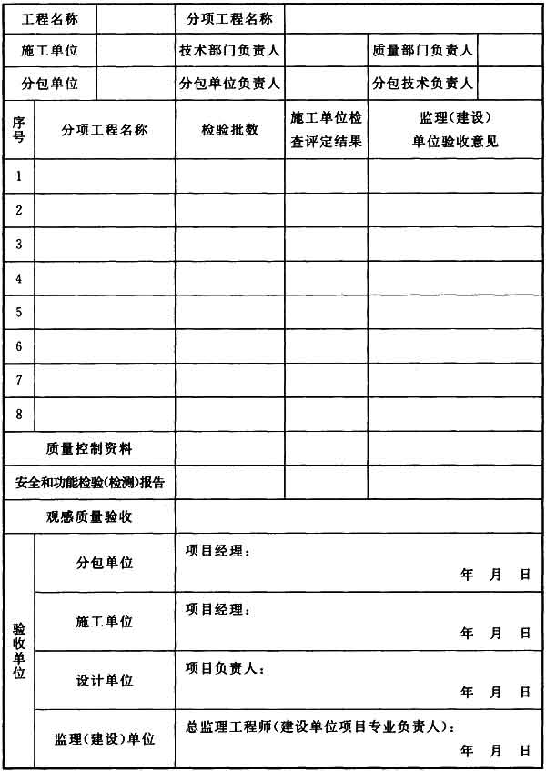 表D.0.2 分項(xiàng)工程質(zhì)量驗(yàn)收記錄