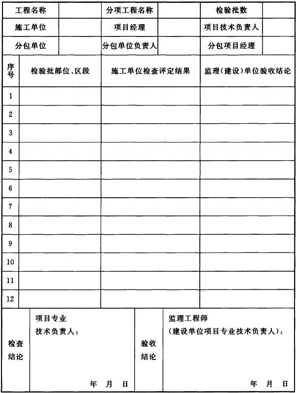 表D.0.1 檢驗(yàn)批質(zhì)量驗(yàn)收記錄