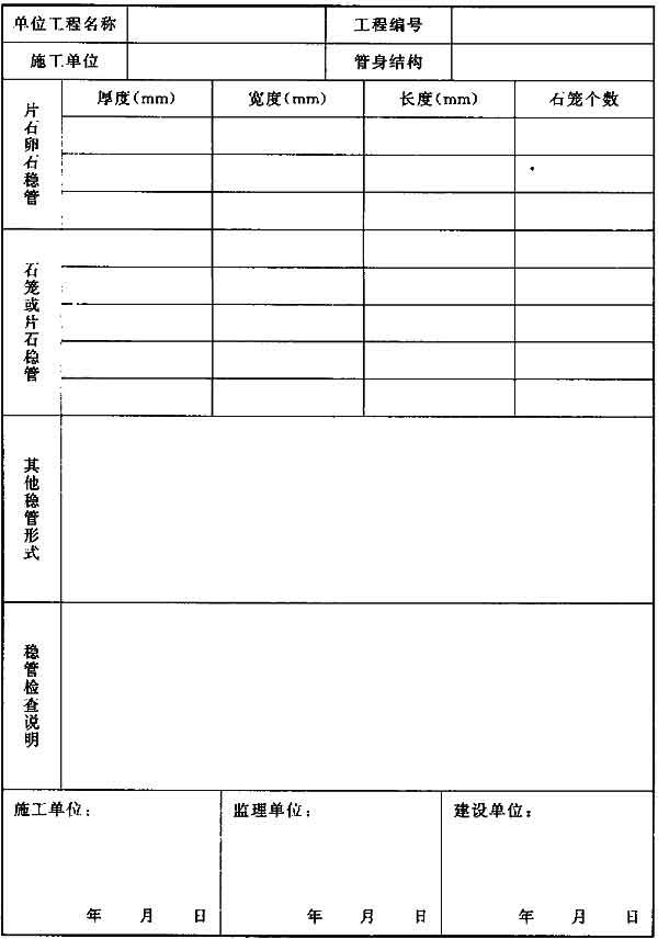 表B.0.10 穿越管線水下穩(wěn)管檢查記錄