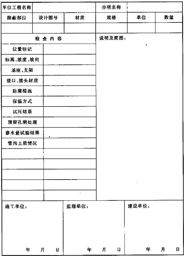 表B.0.7 管線工程隱蔽檢驗(yàn)記錄