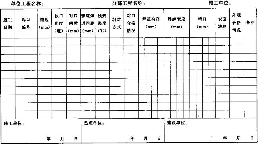 B.0.3 管線焊口組對(duì)及焊縫外觀檢查記錄宜符合表B.0.3的規(guī)定。(免費(fèi)下載)GB 50840-2012 礦漿管線施工及驗(yàn)收規(guī)范