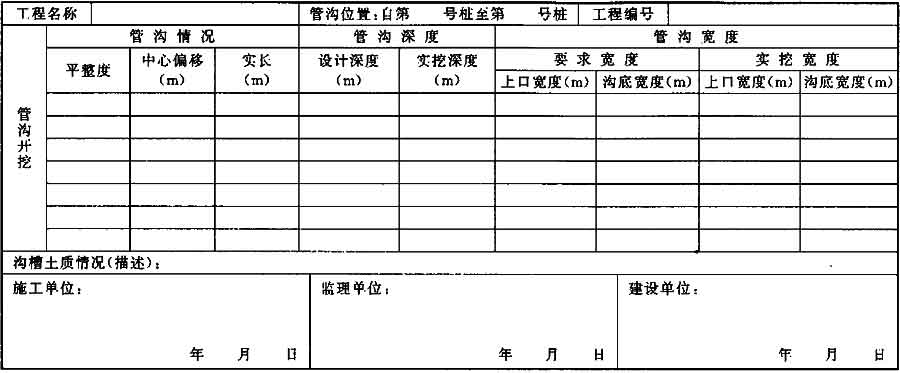 表B.0.2 管線下溝、回填質(zhì)量檢查記錄