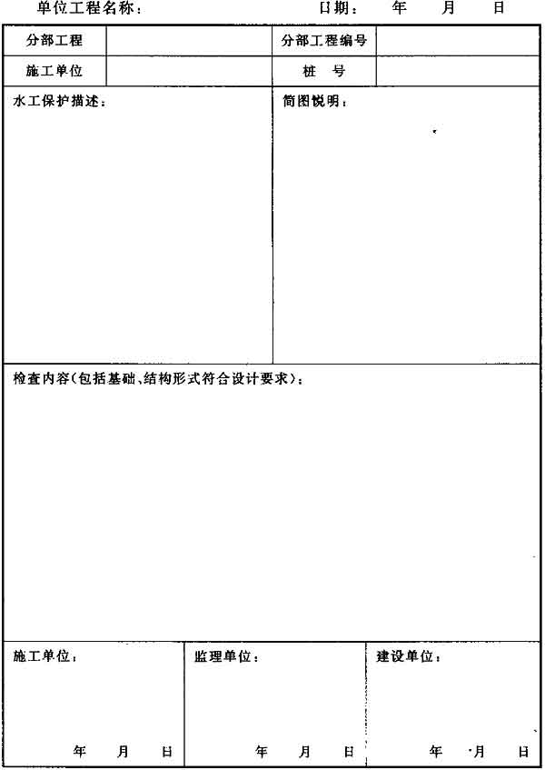 B.0.20 水工保護(hù)工程檢查記錄宜符合表B.0.20的規(guī)定。大牛工程師