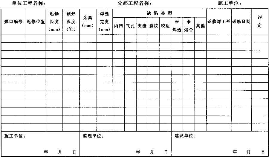 表B.0.5 焊口返修質(zhì)量檢查記錄