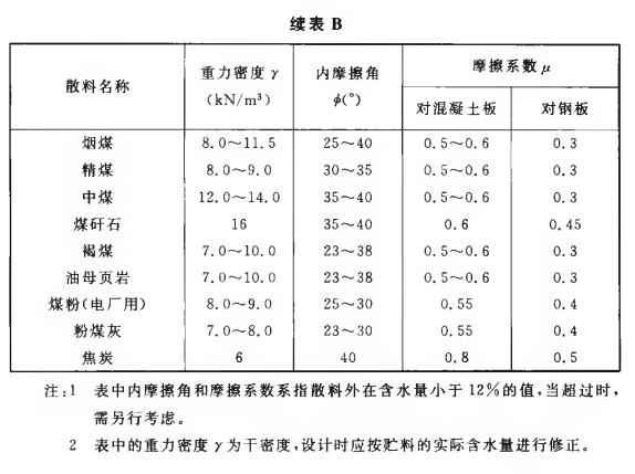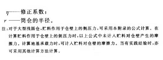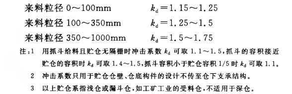 H.0.1當采用大型車輛卸料且車輛的容積小于貯倉容積的1/5時,貯料沖擊系數(shù)可取下值: