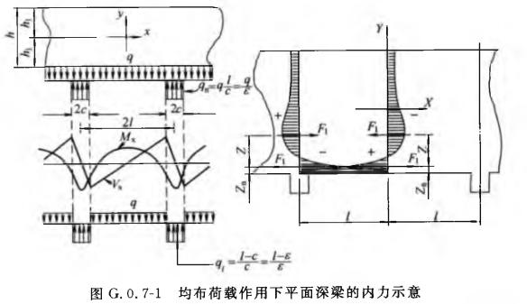 1均布荷載作用下平面深梁如圖G.0.7-1所示,其內(nèi)力表見表G.0.7-1。