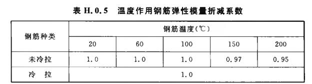 H.0.5溫度作用下鋼筋彈性模量折減系數(shù)