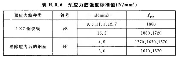H.0.6預應力筋強度標準值可按表H.0.6。