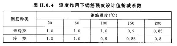 H.0.2溫度作用下混凝土強度設計值的折減系數(shù)可按表H.0.2。