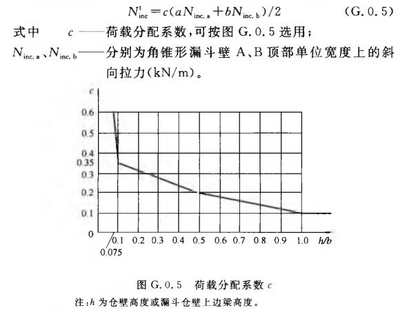 G.0.5對稱布置且柱子支承的角錐漏斗壁交角頂部在貯料重量及漏斗自重作用下的斜向拉力