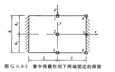 3集中荷載作用下兩端固定深梁如圖G.O.6-3所示,其內(nèi)力表見表G.0.6-3。