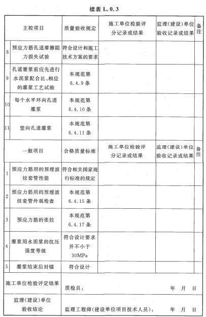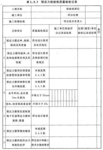 L.0.3 預應(yīng)力檢驗批質(zhì)量驗收應(yīng)按表L.0.3進行記錄。