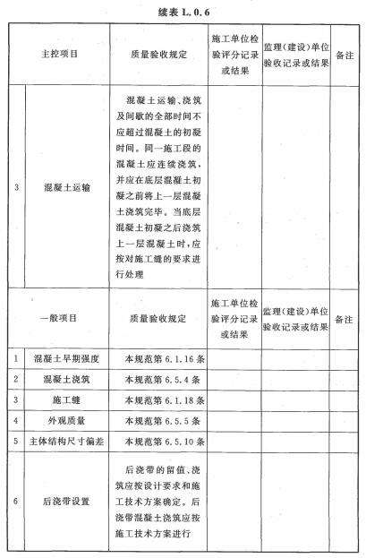 L.0.6 高聳結(jié)構(gòu)混凝土施工檢驗批質(zhì)量驗收應(yīng)按表L.0.6進行記錄。