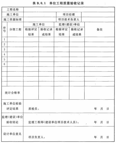 B.0.1單位工程質(zhì)量驗收應(yīng)按表B.0.1進行記錄。