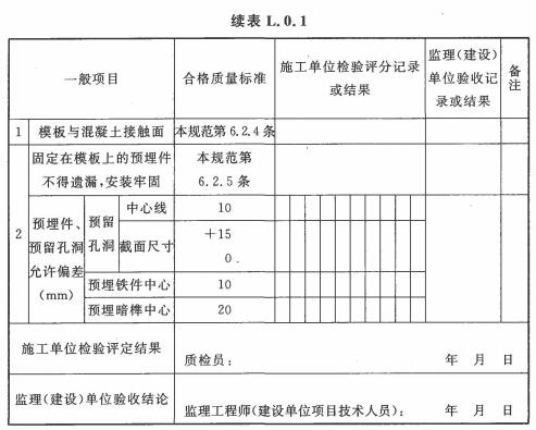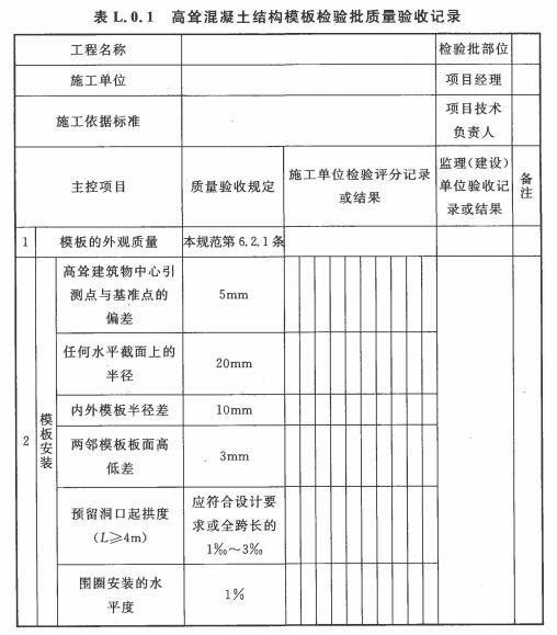 L0.1高聳混凝土結(jié)構(gòu)模板檢驗批質(zhì)量驗收應(yīng)按表L0.1進行記錄。