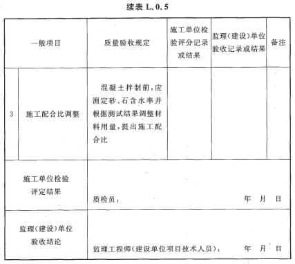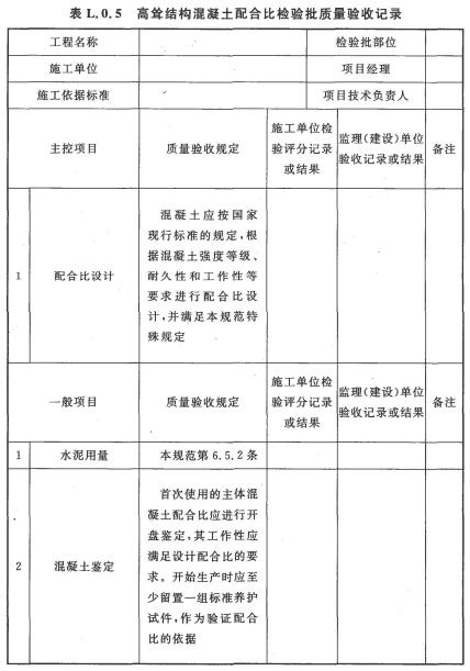 L.0.5 高聳結(jié)構(gòu)混凝土配合比檢驗批質(zhì)量驗收應(yīng)按表L.0.5進行記錄。