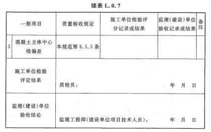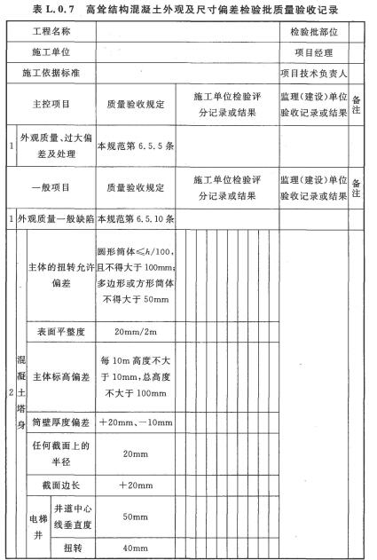 L.0.7 高聳結(jié)構(gòu)混凝土外觀及尺寸偏差檢驗批質(zhì)量驗收應(yīng)按表L.0.7進行記錄。